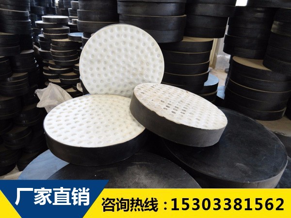 矩形(圓形)式板(1)性能:本產品由多層橡膠片與薄鋼板鑲嵌、粘合在壓力、溫度和時間內硫化壓制而成。有豎向剛度以承壓垂直荷載,能將梁板上部構造的反力傳遞給墩臺,有良好的彈性,以適應梁端的轉動;又有較大的剪切變形以滿足上部梁體構造的水平位移。